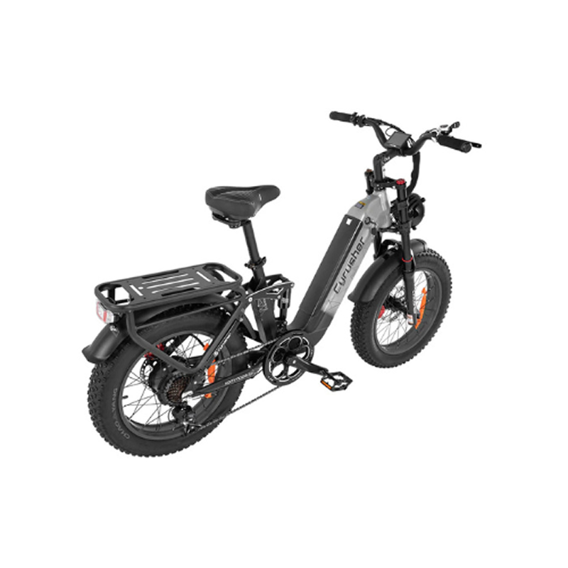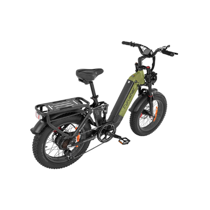 La Cyrusher Kommoda 2.0 une potencia y confort: motor 750W, batería 48V 20Ah con hasta 110 km, velocidad máx. 45 km/h, doble suspensión y Shimano 7V. Ruedas 20×4” antipinchazos, frenos hidráulicos 180 mm y carga útil 159 kg para moverte con seguridad en ciudad o fuera de ella.