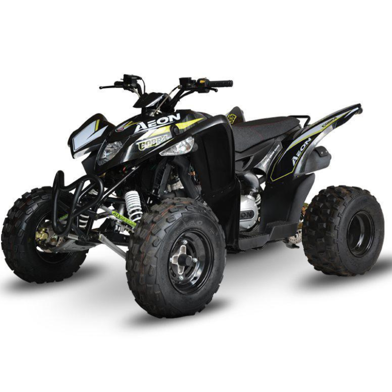 El Aeon Cobra 400 es un quad diseñado para ofrecer una experiencia de conducción todoterreno sin igual. Con su potente motor y su diseño robusto, se adapta tanto a las aventuras en plena naturaleza como a los trabajos intensivos. Tanto si eres un amante de las emociones fuertes como si buscas un vehículo utilitario, el Aeon Cobra 400 combina potencia, comodidad y maniobrabilidad.