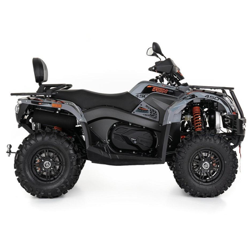 4.    Equipamiento premium: el Iron Max 450 Limited está equipado con un cabrestante, protectores de manos y una bola de remolque, ideal para remolcar equipos adicionales. Las llantas de aluminio refuerzan su estilo y durabilidad.